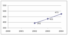 Можна виділити комплекс соціально-психологічних характеристик, який характеризує ставлення більшості українців до освіти. Вища освіта стала нормою для переважної більшості випускників шкіл, через що кількість вступників до вищих навчальних закладів щороку збільшується. В умовах, коли через необхідність фінансового виживання більшість вузів «закриває очі» на рівень підготовки абітурієнтів, які подали заяву на контрактну форму навчання, в Україні за падіння народжуваності і існування великої кількості соціально-економічних проблем чисельність студентів на 10 тис. чол. населення зростає (рис. 1).