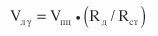 Далее опять же известно, что в большинстве печатных машин стойки захватов кареток расположены не на радиусе делительной окружности приводных звездочек (Rд) цепного транспортера, а выше. Отношение радиусов Rст/Rд больше единицы и обычно находится в пределах 1,10–1,18. Это делалось для того, чтобы уменьшить скорость движения листа в зоне приемного стола. Отсюда следует, что с момента выхода каретки на прямолинейный участок, соответствующий углу g, скорость стоек захватов становится равной скорости средней линии цепи (делительной окружности звездочек). Скорость увода листа кареткой будет равна: