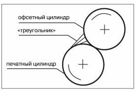 Рис. 2. Образование "треугольника" в зоне печати (между печатным и офсетным цилиндрами)