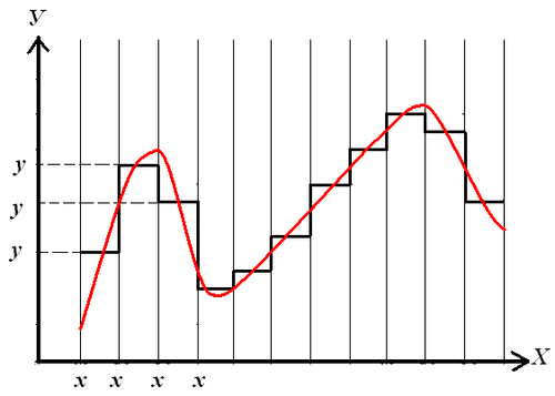 Ось значений функции можно разбить на отрезки с данным шагом и отобразить каждый из выделенных отрезков из области определения функции в соответствующий отрезок из множества значений. В итоге получим конечное множество чисел, определяемых, например, по середине или одной из границ таких отрезков.
