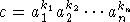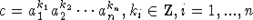 , then we have the decomposition (k1,...,kn)=(s1,...,sn)+(t1,...,tn) of two unimodular vectors. Then c=(a1s1...ansn)(a1t1...antn) is a product of two primitive elements.