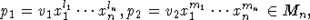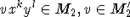 as a product of two primitive elements, which correspond to primitive elements of M2: v1xk1yl1,v2xk2yl2,v1,v2
