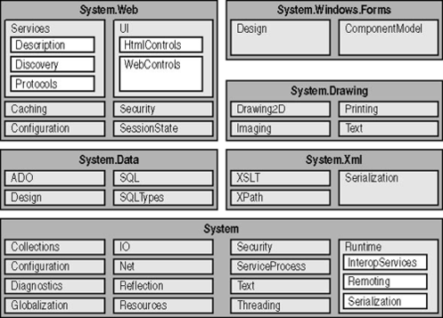Рис 2.2. В .NET Framework включены библиотеки, предназначенные для облегчения взаимодействия между службами, устройствами и компьютерами.