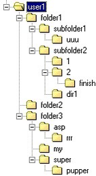 В каждом из представленных на рисунке каталогах может находиться неограниченное количество файлов, либо некоторые из каталогов могут быть пустыми. Необходимо представить содержимое папки user1 на Web-странице в дружественном для пользователя виде.