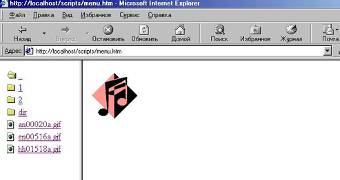 Далее в браузере набираем, например, http://localhost/scripts/menu.htm