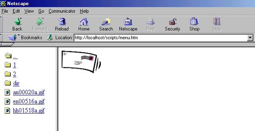 На данном скриншоте показан пример меню. Страница menu.htm разделена на два фрейма. В левом фрейме находится файл list_files.asp, а правый фрейм используется для отображения файлов, ссылки на которые находятся в левом фрейме. В левом фрейме можно свободно перемещаться по папкам. Т.о. можно организовать меню пользователя.