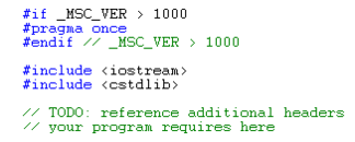 из Listing2.cpp и вставьте их в stdafx.h вот в это место: