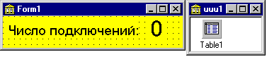 Начнем с создания сервера приложений. Создадим главную форму приложения, основное назначение которой - служить индикатором запущенного сервера. С этой целью можно разместить ее где-нибудь в углу экрана, а свойство FormStyle установить равным fsStayOnTop, чтобы не потерять это окно среди других открытых окон. Далее следует создать удаленный модуль данных, выбрав пиктограмму Remote DataModule из репозитария объектов, поместить в него компонент TTable или TQuery, установив необходимые значения свойств DatabaseName и TableName. Свойство Active также следует установить равным True (или установить его динамически при создании модуля данных). В противном случае компонент не будет содержать никаких данных, и тем более предоставлять их клиентскому приложению (рис.1).