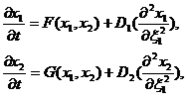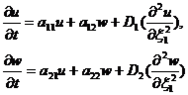 Для формирования четкого представления о предложенном методе необходимо подробно рассмотреть предметную область, а именно, параметрический анализ структуры Тьюринга [2]. В общем случае под термином структура Тьюринга понимают систему дифференциальных уравнений определенного вида. Для реакции двух веществ с одномерной диффузией система уравнений будет иметь следующий вид [3]: