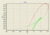 I. Класс TGraph - предназначен для отображения графиков получаемых при построении параметрических зависимостей (Рис №2), а так же фазовых портретов при решении системы дифур и графиков динамики изменения концентрации вещества при численном счете (1). Данный класс во внешнем интерфейсе имеет лишь один метод AddXY(X,Y : Real), предназначенный для внесения очередной точки-параметра на плоскость. Масштабирование, фокусировку, выделение области и смещение класс TGraph осуществляет самостоятельно.