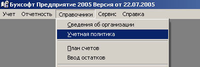 Для ввода информации по учетной политике выберите в меню «Учетную политику».