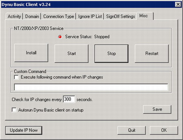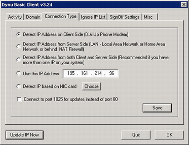 Как уже говорилось, клиентская часть служит для передачи на сервис текущего значения IP-адреса. Но иногда возникают ситуации, что клиент вначале обнаруживает локальный IP-адрес компьютера и пытается передать на сервис его, а не тот адрес, который выдает провайдер. Для того чтобы избежать подобной ситуации, нужно внести локальный адрес в список игнорируемых адресов при настройке клиента.