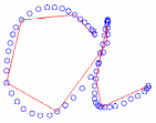 Рисунок 4 - Изображение тестового символа. Линией обозначены выбранные точки, окружностями – введенные