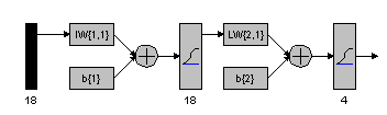 На этапе классификации разделяем пространство входных векторов на отдельные области, в качестве классификатора используем нейронная сеть. Была исследована двухслойная нейронная сеть обратного распространения с логарифмической сигмоидной функцией активации нейронов. Число входов – 2*(n -1), число выходов равно числу символов. Такая нейронная сеть позволит получить на выходе оценку совпадения исследуемого образа с исходными.