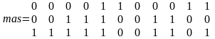 Рассмотрим работу алгоритма на примере исходного бинарного массива (3). Работа функции начинается с того, что находится первый элемент массива, значение которого 1 (элемент mas[1][5]).