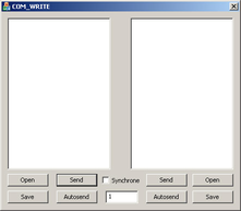 Программа позволяет открыть два файла и посылать команды из любого из них в порт как вручную по одной, так и автоматически, определенное количество команд в секунду.