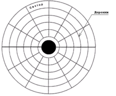 Поверхность диска разбита на дорожки, представляющие собой окружности (рис. 4). Дорожки разделены на секторы. Размер сектора обычно составляет 512 байт. В большинстве файловых систем пространство на диске выделяется кластерами, которые состоят из нескольких секторов. Кластер – минимальный размер места на диске, которое может быть выделено для хранения одного файла. Перед тем, как диск может быть использован для записи данных, он должен быть размечен — на его дорожки должны быть записаны заголовки секторов с правильными номерами дорожки и сектора, а также, если это необходимо, маркеры. Как правило, при этом же происходит тестирование поверхности диска для поиска дефектов магнитного слоя. Не следует путать эту операцию — физическое форматирование диска — с логическим форматированием, заключающемся в создании файловых систем. Современные жесткие диски обычно требуют физической разметки при их изготовлении.