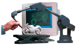 Одним из примеров полнофункционального решения для оцифровки объектов любой формы служит недорогой дигитайзер из модельного ряда MicroScribe-3D производства компании Immersion Corporation. На несимметричной основе прикреплен трехшарнирный рычаг, оканчивающийся пером-датчиком. Шарниры с низким уровнем трения обеспечивают практически абсолютную свободу перемещения стального пера. Дигитайзер MicroScribe может оцифровывать предметы, находящиеся в радиусе до 840 мм. Рычаг устройств - жесткий, наличие шарниров позволяет провести дугу с максимальным углом в 330°. Наконечник «руки» может иметь разную форму: в виде шарика или острой иголочки - для снятия более точных показаний. В комплекте со сканером поставляются также ножные педали, которые играют роль правой и левой кнопок мыши.