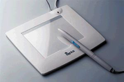 В состав устройства входит специальный указатель с датчиком, называемый пером. Собственный контроллер посылает импульсы по ортогональной сетке проводников, расположенной под плоскостью планшета. Получив два таких сигнала, контроллер преобразует их в координаты, передаваемые в ПК. Компьютер переводит эту информацию в координаты точки на экране монитора, соответствующие положению указателя на планшете. С помощью пера Вы рисуете на планшете, при этом графические редакторы могут воспринимать его как кисть, карандаш, мелок и т.д. Перевернув перо, Вы можете стереть изображение. Дигитайзеры, как следует из названия, являются инструментом оцифровки трехмерных объектов. Для дальнейшей обработки и редактирования результатов сканирования существует множество различных программ.