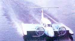 В 1940 году американский инженер Д. Уорнер спроектировал аппарат, который назвал "компрессионным самолетом". В носовой части корпуса располагались два мощных вентилятора для подачи воздуха под днище экраноплана во время его выхода из воды. Поддержание крейсерского режима отводилось двум винтовым двигателям, размещенным на уткообразном крыле. В этом проекте впервые предлагалось разделить стартовые (поддувные) и маршевые силовые установки.