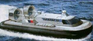 | Потрульное судно на воздушной подушке проекта 20910 "Чилим" (расчетные данные): масса - 8,1т; двигатели - 2 дизеля по 250кВт; скорость - 40 узл.; экипаж - до 8 чел.; длина 12м, ширина - 5,6м, высота - 4,5м; высота воздушной подушки - 0,6м |