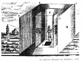 Совершенно очевидно, что задолго до того, как возникла идея закрепления изображения на светочувствительной поверхности, должен был быть сконструирован прибор, при помощи которого можно было бы получить, - хотя бы еще и не в закрепленном виде, - достаточно четкие изображения или, может быть вернее, отображения предметов внешнего мира. Идея такого прибора возникла еще y гениального итальянского художника и ученого эпохи Возрождения - Леонардо да Винчи (1452-1519). Он одним из первых обратил внимание на то, что если в ставне окна сделать небольшое отверстие, то на стене, противоположной окну, появляется изображение внешних предметов.