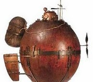 В этой вручную управляемой хитроумной лодчонке один человек мог погружаться, открывая клапан и набирая воду в балластную емкость, либо подниматься на поверхность, вытеснив воду из этой емкости с помощью накачанного туда воздуха.