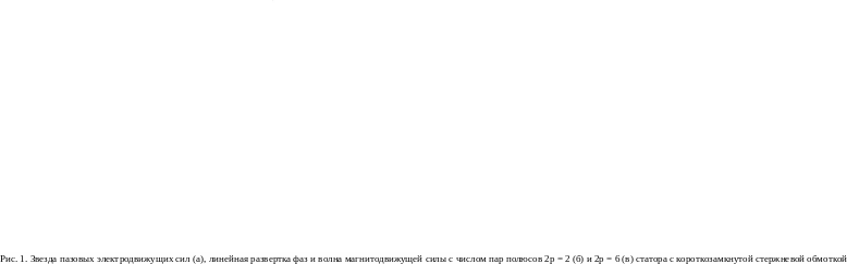 В случае трехфазного питания и образования в электромеханической части АДКСП вращающейся МДС на основе чередования фаз по трехфазной системе (рис. 1, а) с заданным числом пар полюсов 2р, возможный минимум числа отводов соответствует количеству пазов на полюс и фазу q = 1 и для 2р = 2, 2р = 4 или 2р = 6 соответственно составляет: