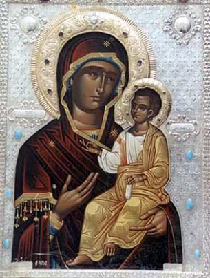 Аще и в море ввержена бысть святая икона Твоя, Богородице, / от вдовицы не могущая спасти сию от врагов, / но явилася есть хранительница Афона и вратарница обители Иверския, / враги устрашающая и в православней Российстей стране чтущия Тя // от всех бед и на пастей избавляющая.