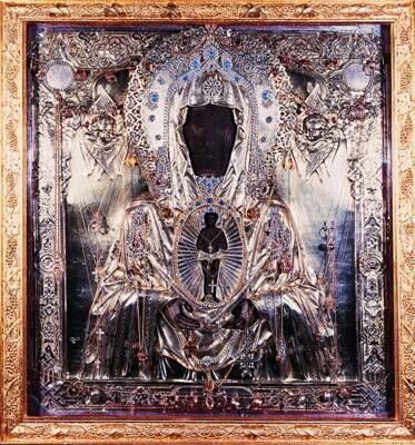 С чудотворной иконы Божией Матери «Блаженное Чрево» сохранились 3 списка. Один из них был исполнен в конце XVI века и предназначался для московского Новодевичьего монастыря. Этотсписок является наиболее точным воспроизведением оригинала и по размерам доски, и по композиции, что послужило причиной перенесения на него древнего оклада чудотворной иконы. В 1927 г. образ был передан в Оружейную палату ГММК.