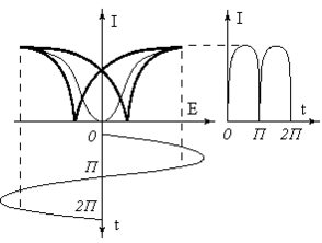 Электрооптический эффект квадратичен, поэтому система частиц реагирует только на величину напряженности поля и не реагирует на его направление. Если зеркально отразить левую экспериментально полученную полупетлю вгд относительно оси абсцисс (в положение вед), то получим классическую петлю гистерезиса абведа, которая имела бы место в том случае, если бы электрооптический эффект зависел от направления электрического поля (рис. 5). Гистерезис в аэрозолях - это явление, которое заключается в том, что физическая величина, характеризующая состояние системы частиц (светорассеяние), неоднозначно зависит от другой физической величины, которая характеризует меняющиеся внешние условия (напряженность электрического поля). Гистерезис будет наблюдаться в тех случаях, когда состояние аэрозольной системы в данный момент времени определяется внешними условиями, имевшими место в предыдущие моменты времени. Неоднозначная зависимость величин наблюдается во многих процессах, так как для изменения состояния тела всегда требуется определенное время, при этом реакция тела будет отставать от вызывающих ее причин. Классическим примером такой зависимости является петля гистерезиса, образующаяся при циклическом перемагничивании ферромагнетиков [6]. Для раз-ных условий опыта кривые электрооптического отклика получаются то более узкими, то более ши-рокими, что должно послужить темой для дальнейших исследований. Числен-но площадь петли гистерезиса, как следует из теоретических соображений, должна быть прямо которые хорасдует источник поля на один цикл пропорциональна поте-рям электроэнергии, переориентации всех частиц, содержащихся в единице объема аэродисперсной среды. По экспериментально полученной нами гистерезисной характеристике электрооптического отклика, которая соответствует предельному гистерезисному циклу, с помощью графоаналити-ческого метода трех проекций графически был найден отклик системы аэрозолей на воздействие гармонического ориентирующего напряжения. Этот отклик соответствует приводимым ранее осциллограммам процесса (рис.6). Полученные результаты свидетельствуют о применимости этого метода расчета нелинейных систем с гистерезисом для анализа поведения аэрозолей при их ориентации, которая возможна не только в электрическом поле, но и в других потенциальных полях (в поле тяготения, воздушном потоке и т.д. [7] ).