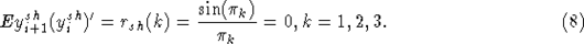 Шаг 1. На основе выборки { yk} вычисляем ковариационные коэффициенты R(0)=Eyiy'i , R(1)=Eyi+1y'i , R(2)=Eyi+2y'i, R(3)=Eyi+3y'i .