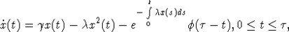 . При сделанных предположениях численность x(t) популяции описывается интегро-дифференциальным уравнением [3]