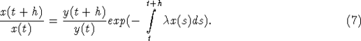 . Учитывая положительность x(t), из последнего равенства получаем, что при достаточно больших t для любого h>0 верно неравенство x(t+h)/x(t) < 1 и, следовательно, существует