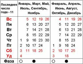 • Дни недели изначально (при введении календаря) должны быть выбраны таким образом, чтобы каждая неделя оканчивалась какой-либо фазой Луны.