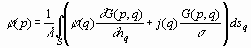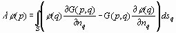 , m - размерность задачи; G(p, q)=1/R(p, q) при m=3, G(p, q)= –ln[R(p, q)] при m=2; R(p, q) - расстояние между точками p и q. Из формулы (9) с учетом (2) получено интегральное уравнение: