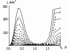 На рис. 1 представлены анодные поляризационные зависимости j(