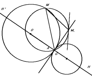 Если АВ - хорда окружности, а - касательная к ней в точке В и перпендикуляры АH1 к прямой а и FB к прямой АВ пересекаются в точке Н (рис.5), то основания H1 и В этих перпендикуляров и середины отрезков АВ, АН и ВН лежат на одной окружности, радиус которой равен половине радиуса данной окружности.