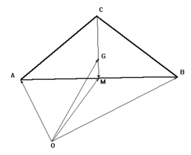 Верно и обратное: если точки А, В и С не коллинеарны и имеет место условие (1), то точка G есть центроид треугольника АВС. В самом деле, пусть точка М - середина отрезка АВ, т. е. при любом выборе начала векторов О имеем M=(A+B)/2. Тогда из равенства (1) получим G=(C+2M)/3, т.е. G делит медиану СМ в отношении 2:1 и потому является центроидом треугольника АВС.