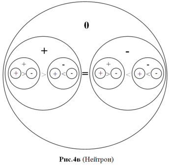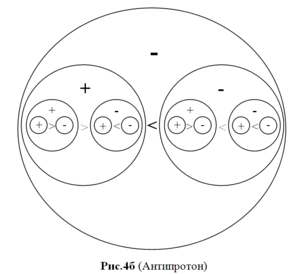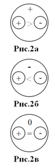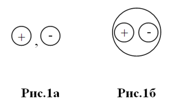| На Рис1а. изображены, условно разделенные, слагаемые энергетической противоположности. Они обозначены знаками «+» и «-». Это элементарные стабильные энергетические частицы – это первичные, неделимые далее частицы, из которых построена вся материя. Это есть ничто иное, как частицы позитрон и электрон. Они не имеют внутренней структуры и могут себя проявить |