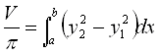 Объем тела вращения равен произведению длины окружности, описываемой центром тяжести фигуры на ее площадь.