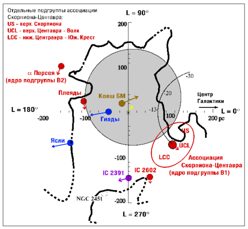 Вторая улика еще красноречивее: в донных железомарганцевых отложениях Тихого океана (которые растут очень медленно, всего на 2-5 мм за миллион лет, и служат естественной геологической летописью) обнаружены слои с избытком редкого изотопа железа 60Fe, которым лишь несколько миллионов лет. Этот изотоп - прекрасный маркер. Он выбрасывается сверхновыми в больших количествах и почти не порождается космическими лучами в метеорном или атмосферном веществе, оседающем на Землю (в частности, на дно океанов). Как быть? Где искать ту область звездообразования, которой эти сверхновые принадлежали?