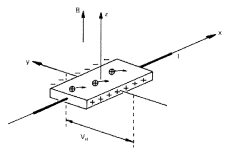Из приведенного рисунка следует, что если пропускать по образцу электрический ток вдоль оси Х, то в магнитном поле Bz ориентированном вдоль оси Z в классическом случае возникает сила Лоренца, отклоняющая электроны к дальней от нас грани образца. Поскольку электроны имеют заряд, то перераспределение электронов вызовет появление электрического поля Ey, величину которого можно найти из условия равенства сил, действующих на электроны в Y-направлении со стороны электрического и магнитного полей: enEy = en vd B, где vd - дрейфовая скорость электрона, n - число электронов проводимости в канале. Величина дрейфовой скорости vd имеет смысл средней скорости направленного движения электронов вдоль оси X и ее не нужно путать со средней скоростью теплового движения.