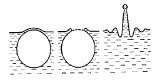 Если весь объем воды нагрет выше критической температуры, то при подъеме размеры ПП продолжают увеличиваться. Достигнув поверхности, ПП либо сразу прорывает поверхностную пленку, либо некоторое время колеблется и меняет форму, избавляясь от избыточной энергии. Когда пузырек лопается, вся окружающая его жидкость устремляется внутрь, и возникает кольцевая волна. Смыкаясь, она создает кумулятивную струю - выбрасывает вверх столбик воды, от подножья которого распространяется волна (рис.5).