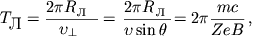 Радиус вращения Rл вокруг силовой линии, обычно называемый ларморовским, определяется из равенства центробежной силы и силы Лоренца. Период обращения Tл составляет
