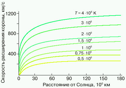 106 К в солнечной короне. При этом значительная часть протонов в короне Солнца не может удерживаться его гравитационным полем, что приводит к непрерывному расширению короны в космическое пространство, то есть к генерации солнечного ветра.
