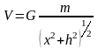 Притяжение шара. Многие геологические тела в земной коре могут быть аппроксимированы шаром (купола, дайки, подводные холмы и т.д.). Предположим, что шар массой М залегает на глубине h и на расстоянии r от точки наблюдения, расположенной на поверхности земли (рис. 27). Будем считать шар однородным по плотности. Поместим его под центром системы координат xoz (y = 0). Притяжение шара эквивалентно притяжению точки, помещенной в центр шара. Поэтому можно воспользоваться формулой, полученной для элементарной массы (V.9):