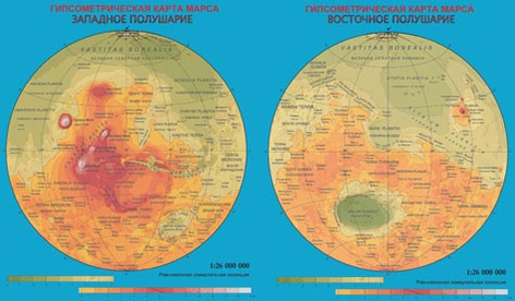 Два года назад авторами создана Гипсометрическая карта Марса по данным КА «Марс Глобал Сервейор», любезно предоставленным американским Центром планетных данных.