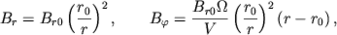 - угловая скорость вращения Солнца, V - радиальная скорость солнечного ветра, индекс 0 относится к точке солнечной короны, в которой величина магнитного поля известна.