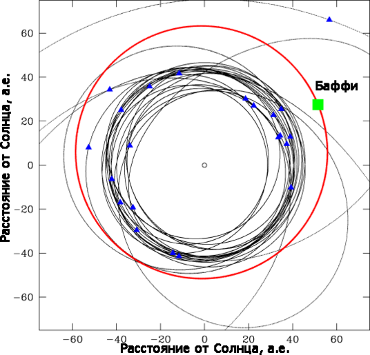 13 декабря 2005 года была обнаружена малая планета 2004 XR 190, названная Баффи (Buffy). Диаметр Баффи около 500-1000 км, что не является рекордом для малых планет. Удивительно другое: в отличие от рассеянных объектов пояса Койпера, имеющих вытянутую орбиту, 2004 XR 190 отличается почти круговой орбитой (перигелий на расстоянии 52 а.е. от Солнца, афелий — на расстоянии 62 а.е.), наклоненной под углом 47 градусов к плоскости эклиптики. Причина возникновения такой траектории астрономам пока неясна.